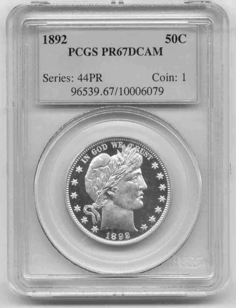 1892 PCGS Proof 67 Deep Cameo Half